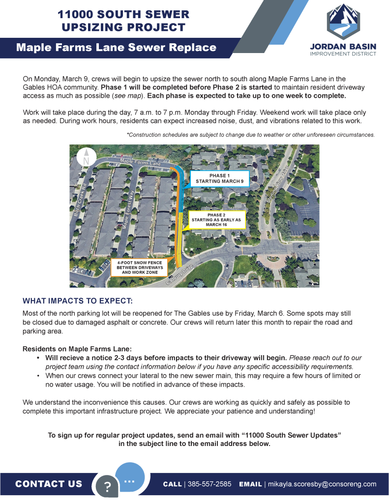 That depends on whether the stoppage is in your private line or the Jordan Basin Improvement District sewer main. If it is in JBID’s main, we fix it as quickly as possible and keep you informed about what’s being done.